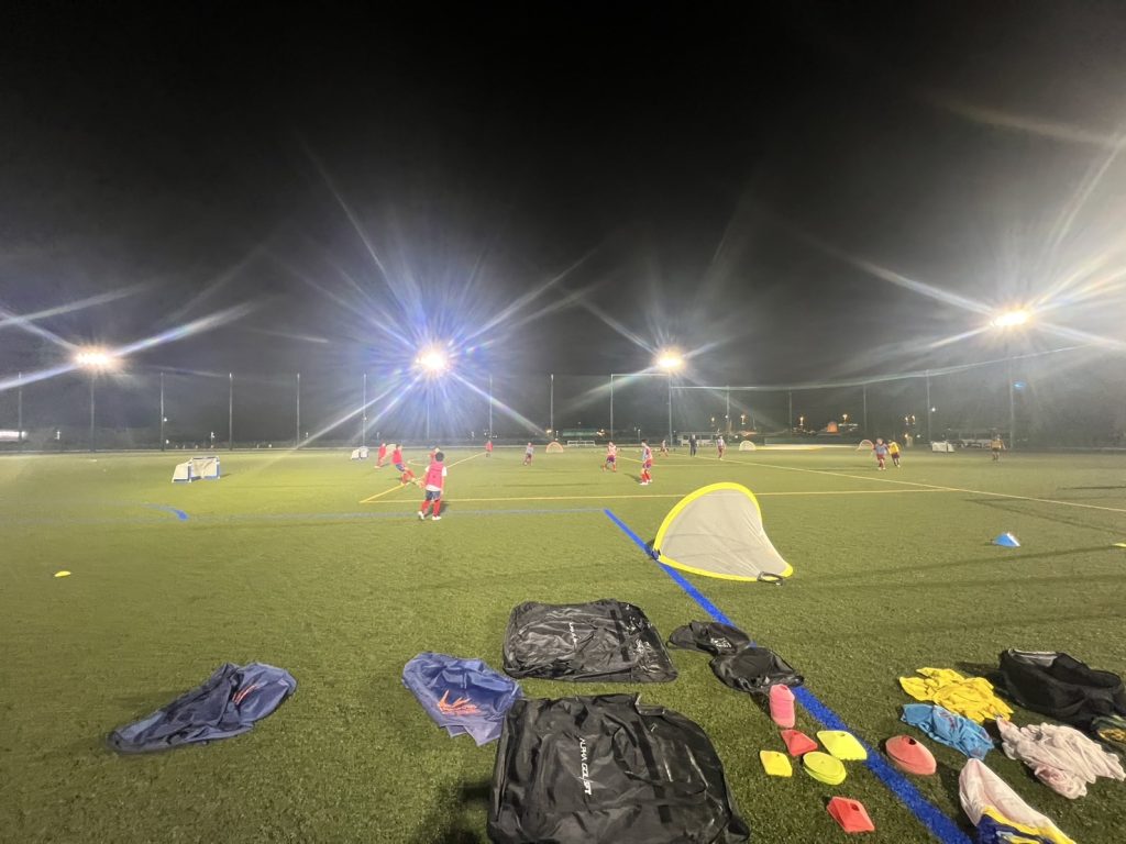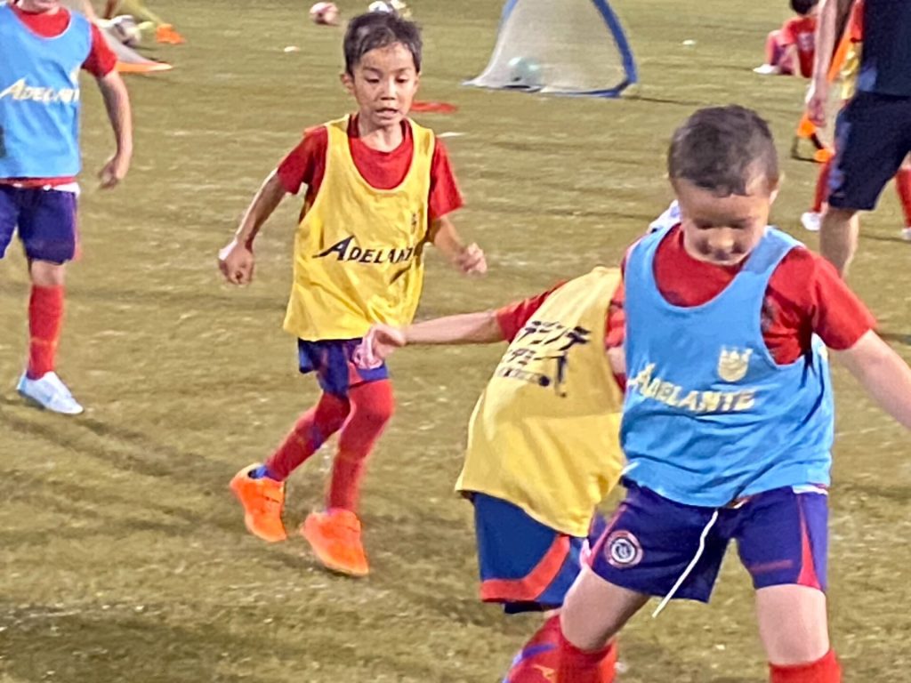 サッカーの原理原則の概念理解や戦術的理解の座学を室内でやった後にグラウンドに入って実際にTRをするクラスです。このクラスは練習=座学+トレーニングとなります。